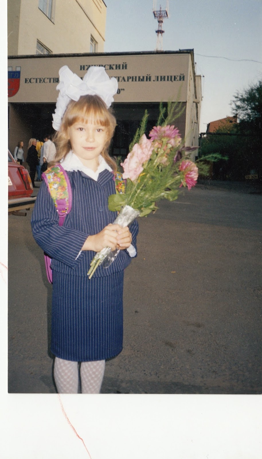 Когда пошла в 1 класс Оля, я с её линейки бегом бежала на свою. Благо, школы через дорогу друг от друга. А когда в первый класс пошла Люба, мои дети пошли в 11-й. У нас была поразительная линейка: я выпускаю класс и отправляю в первый класс дочь. Она и подавала первый звонок с Русланом - моим учеником.